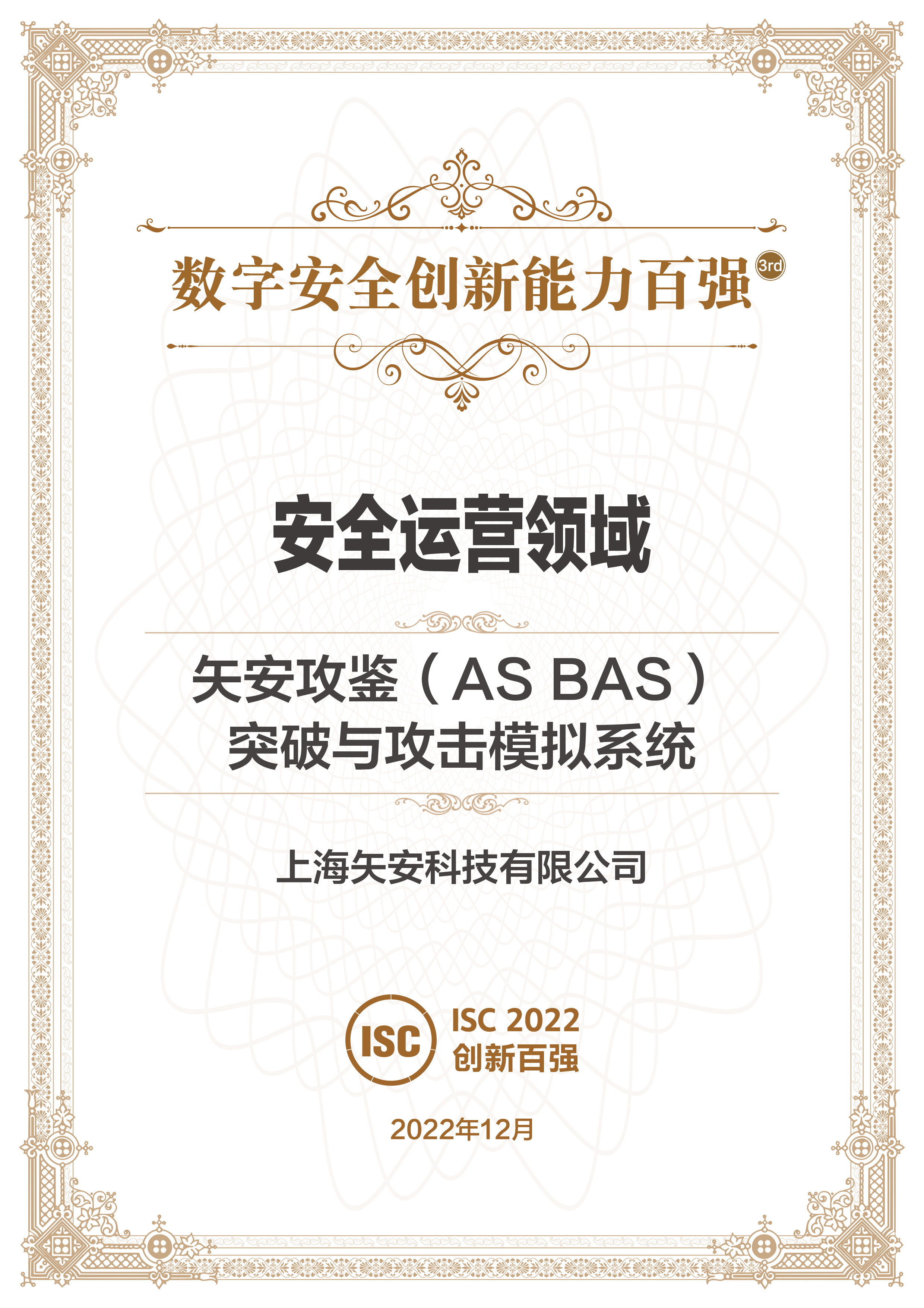 【喜报】矢安科技荣获ISC2022年度数字安全创新能力百强