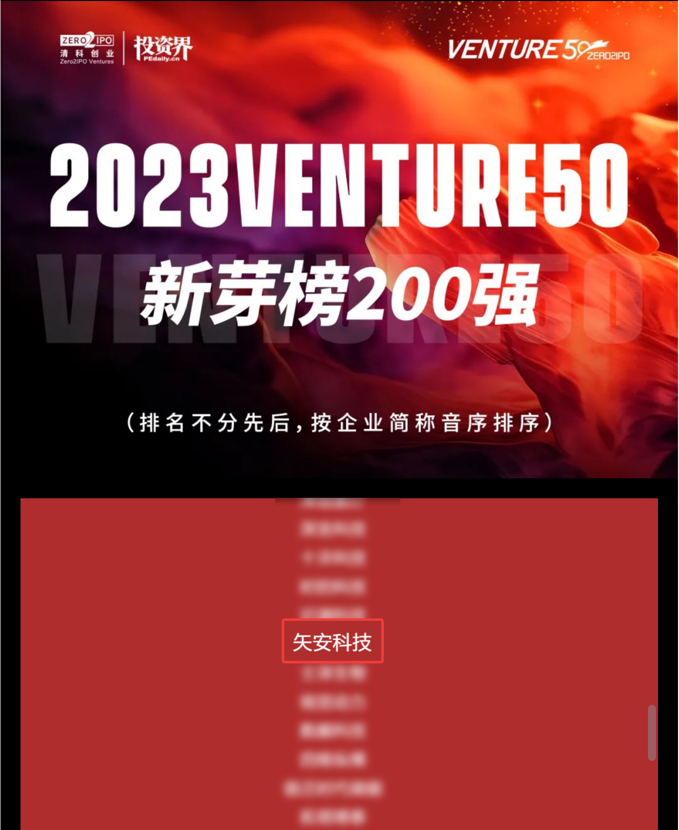 近日,由清科创业、投资界发起的2023Venture50初评结果正式发布,其中,矢安科技成功在层层筛选中入选“2023Venture50新芽榜200强”。