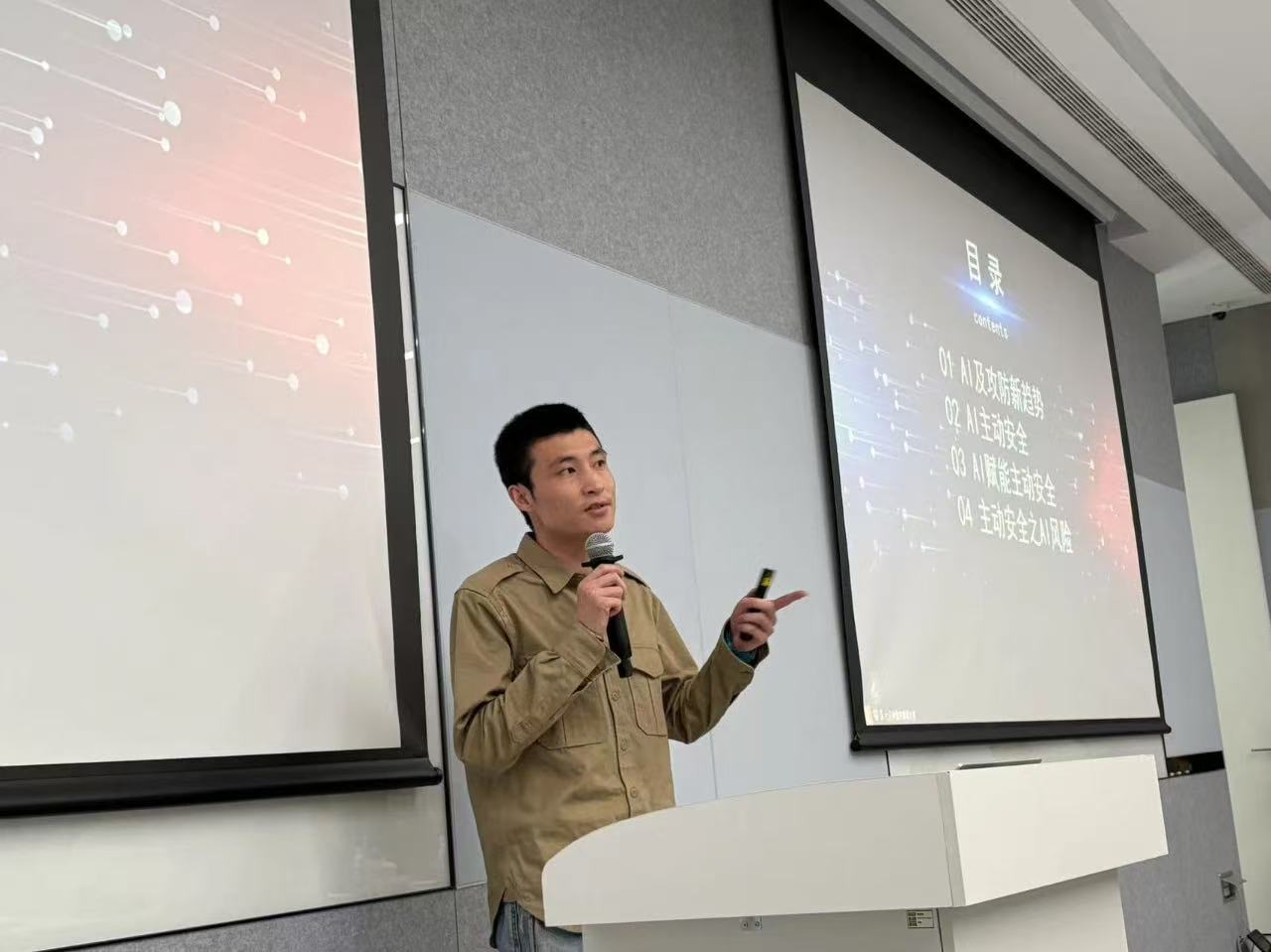 其中,矢安科技安全研究院李佩泽以AI主动安全及实践为议题进行了精彩的分享。在分享中李佩泽探讨了AI技术(如DeepSeek)的快速发展及其在网络安全领域的双刃剑效应,包括AI辅助攻击的兴起(如勒索软件组织使用AI)以及AI自身的安全隐患(如数据泄露、恶意攻击等)。