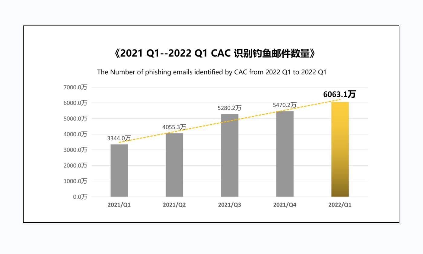 从上述图片可以看出,2021年Q1至2022年Q1,钓鱼邮件发送数量持续增长,相较去年同期增长甚至高达81.31%,钓鱼邮件攻击已成为目前邮件系统的主要威胁之一。如2022年5月18日凌晨,搜狐部分员工收到诈骗邮件。经调查,实为某员工使用邮件时被意外钓鱼导致密码泄露,进而被冒充财务部盗发邮件,在及时发现的情况下依然有24名员工被骗取4万余元人民币。